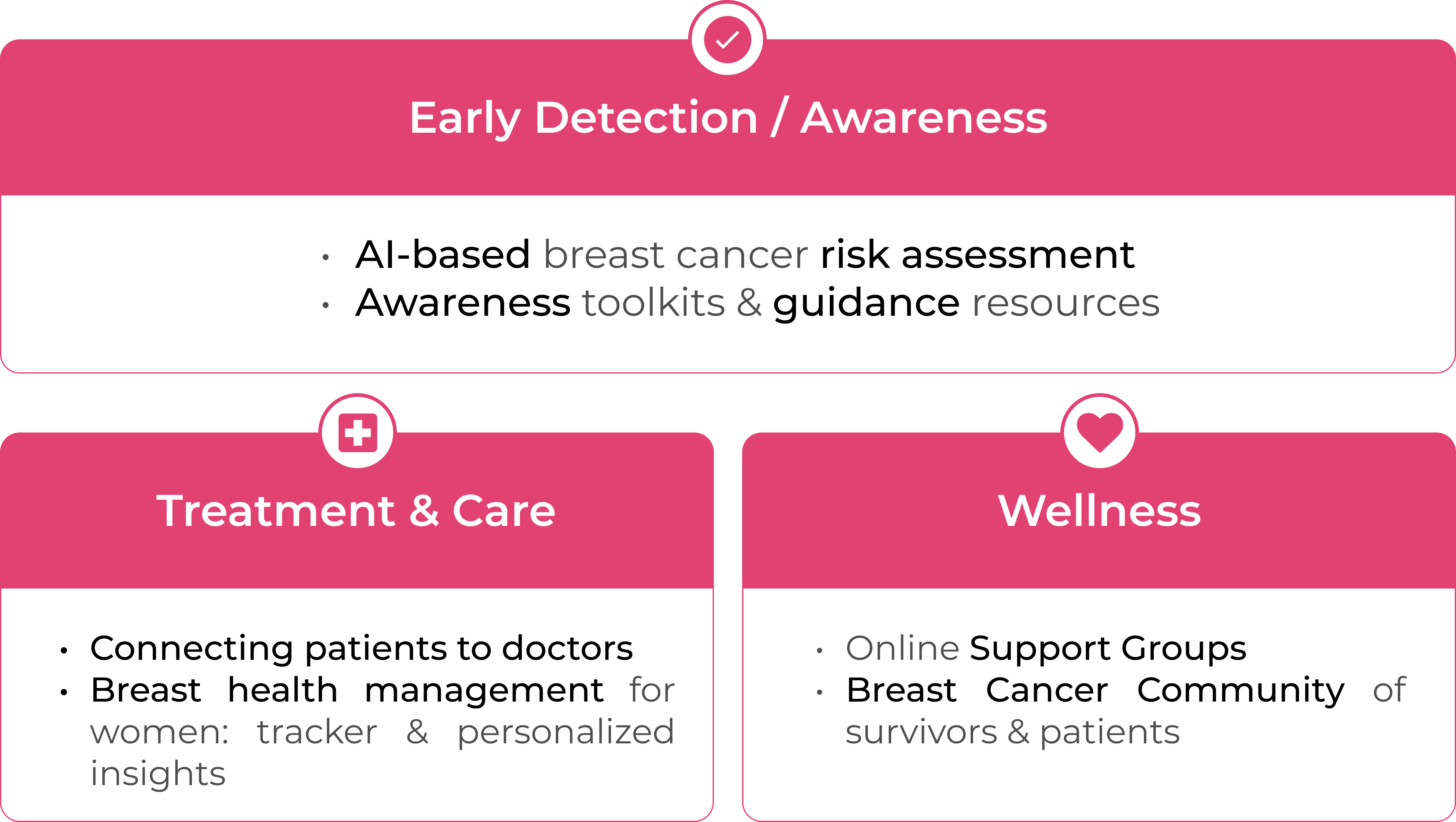 - Providing affordable breast cancer healthcare access and awareness, mainly to the needy masses in tier 2 and tier 3 cities of India